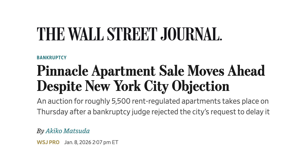 Pinnacle Apartment Sale Moves Ahead Despite New York City Objection An auction for roughly 5,500 rent-regulated apartmen...