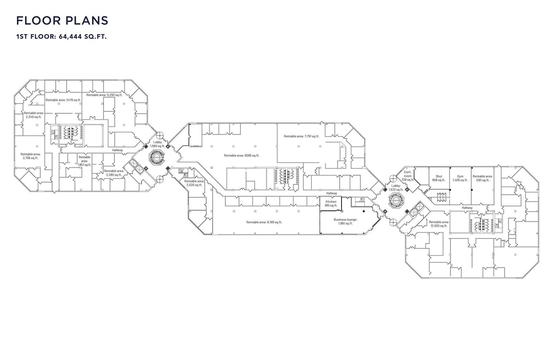 • 2 independent entrances, each with a three-story sky lit atrium lobby